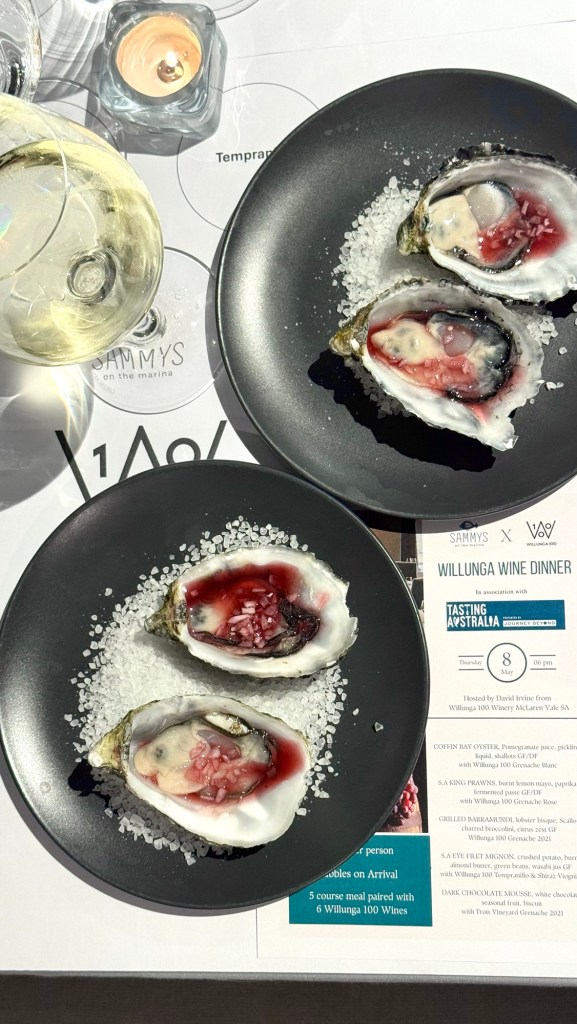 Known for their sweeping ocean views and the freshest seafood in Adelaide, Sammy’s on the Marina played host to a five-course degustation that heroed South Australian produce, each artfully paired with wines from McLaren Vale Grenache specialists, Willunga 100. Guests were guided through the evening by Willunga 100 Brand Ambassador Dave Irvine, who shared not just the stories behind each wine, but his deep affection for Grenache and its rising reputation. Mike’s passion was contagious, adding depth and insight to each course and pour.