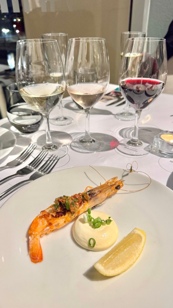 Plump South Australian king prawns arrived grilled to perfection, their sweetness enriched by a smoky burnt lemon mayo and just a touch of funk from fermented paste. The Willunga 100 Grenache Rosé – dry, bright and brimming with blood orange, red berries and floral aromas – proved a stunning match, lifting the dish with its lively minerality.